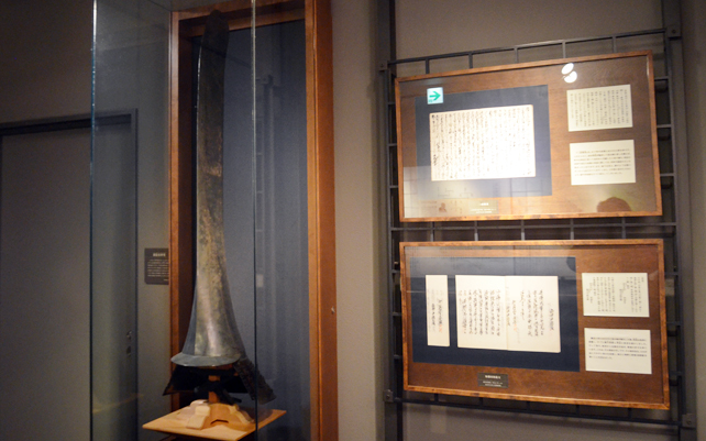 前田利長が着用したとされる「銀鯰尾兜」(春田勝光作製)、高さは127.5cmもあります。 |