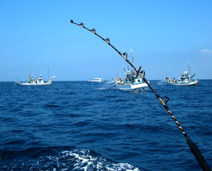 行徳沖にはかなりの船団が出来ていました。遊漁船も3隻見えますが・・・釣果は上がっていません。 |