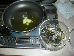 三番瀬のボンゴレ、完成です!さあ、いただきましょう。 |